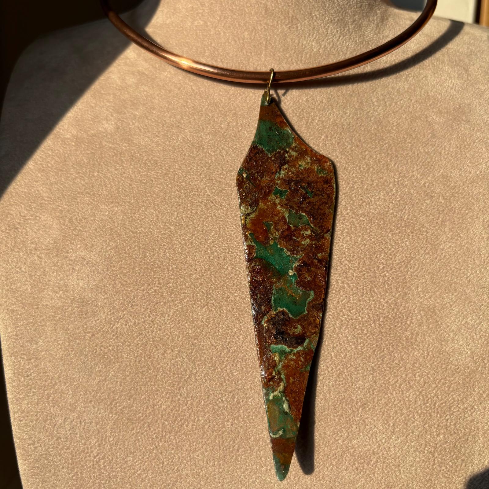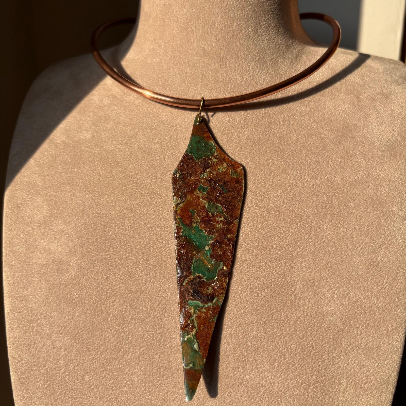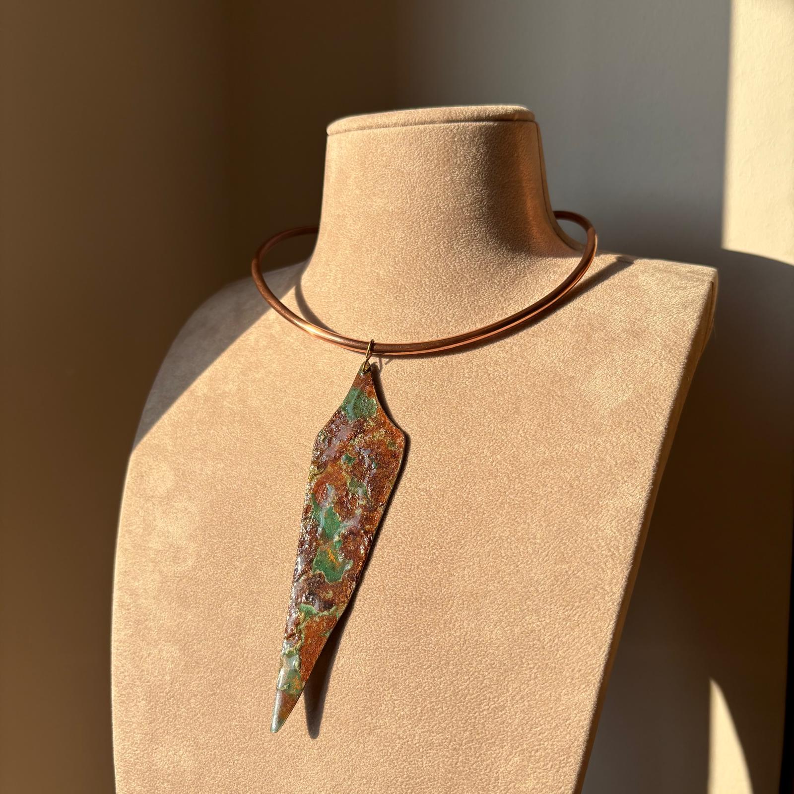 Materials: the piece is made entirely of copper with a unique finish on the surface. A special process using patinas, pigments, iron paste, metallic paste, paints, and varnish. Acids are applied to the copper, producing an incredible chemical reaction that results in one-of-a-kind pieces — no two are ever the same.