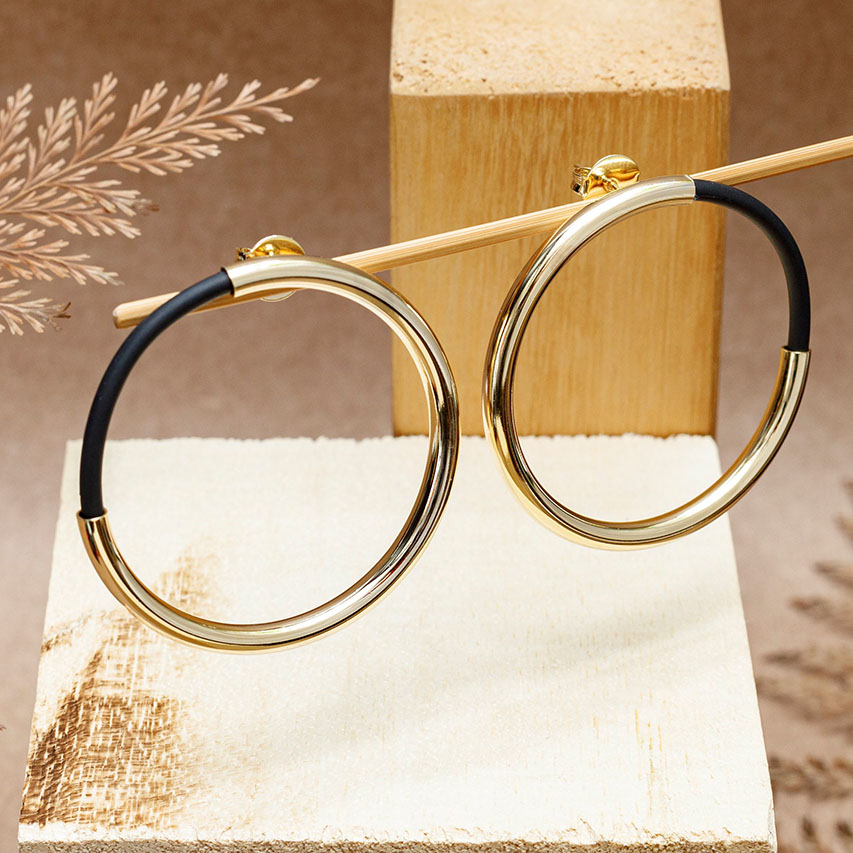 Gold plated Earrings. Details in metal with black rubber cover. Weight: 10,9g (both)