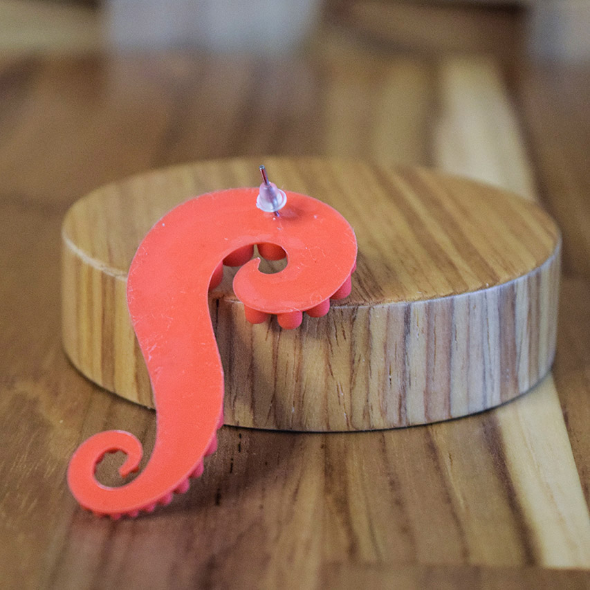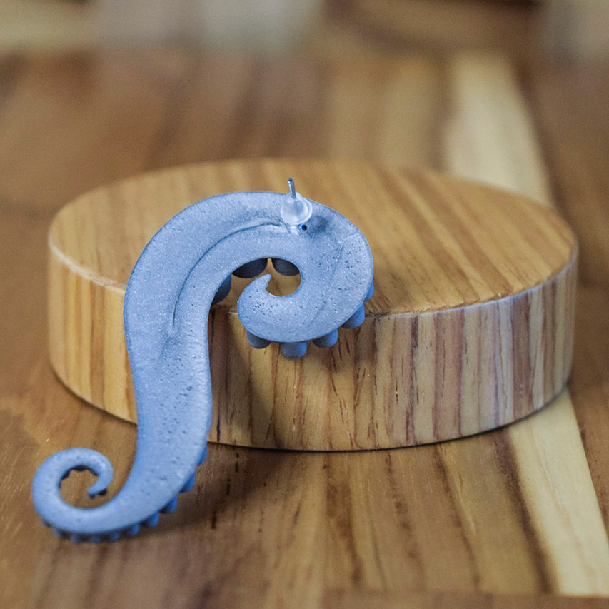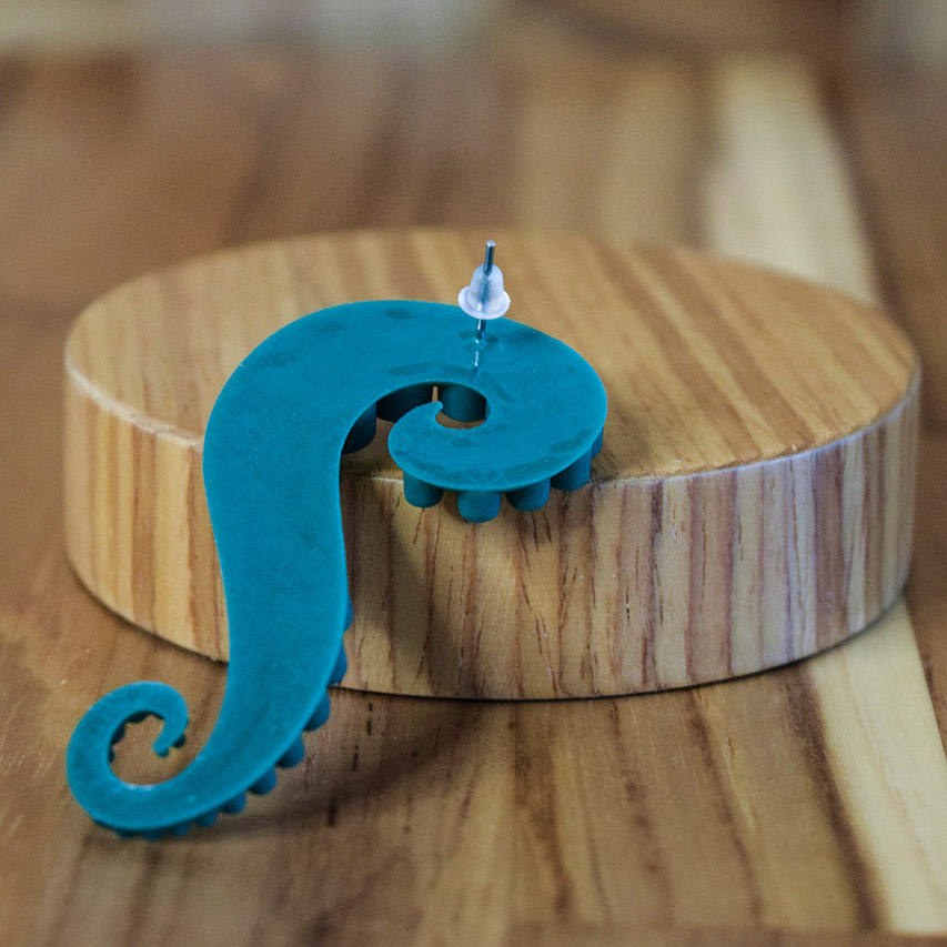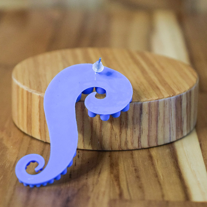 Handmade earring made with malleable non-toxic resin. Hypoallergenic metal pins and silicone screwdrivers. The earring has one colour.