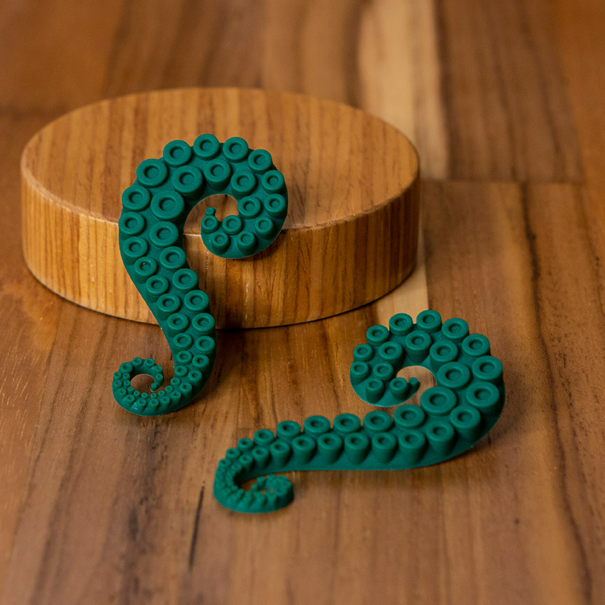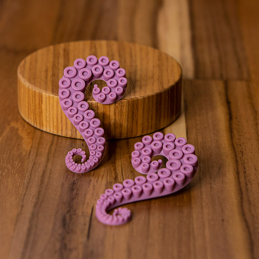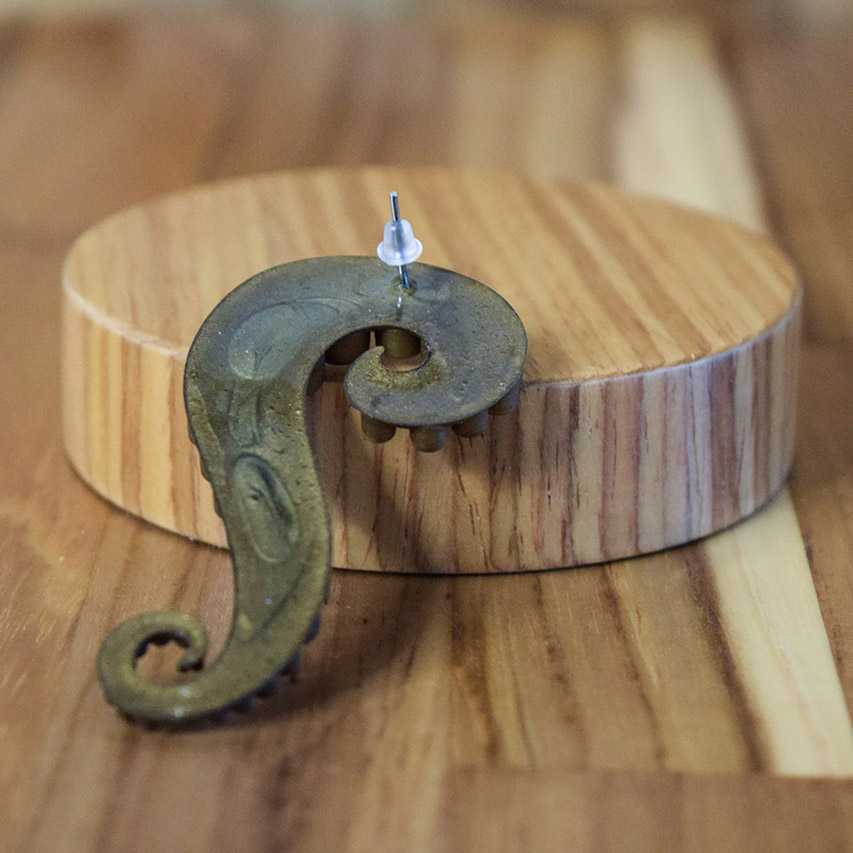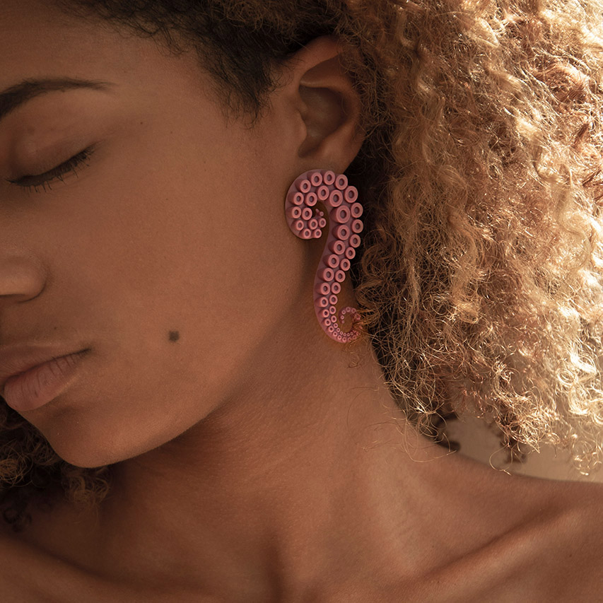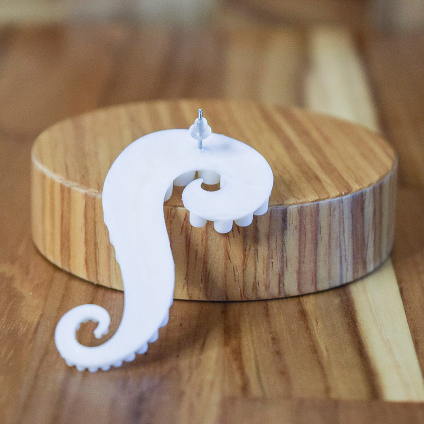 Handmade earring made with malleable non-toxic resin. Hypoallergenic metal pins and silicone screwdrivers. The earring has one colour.
