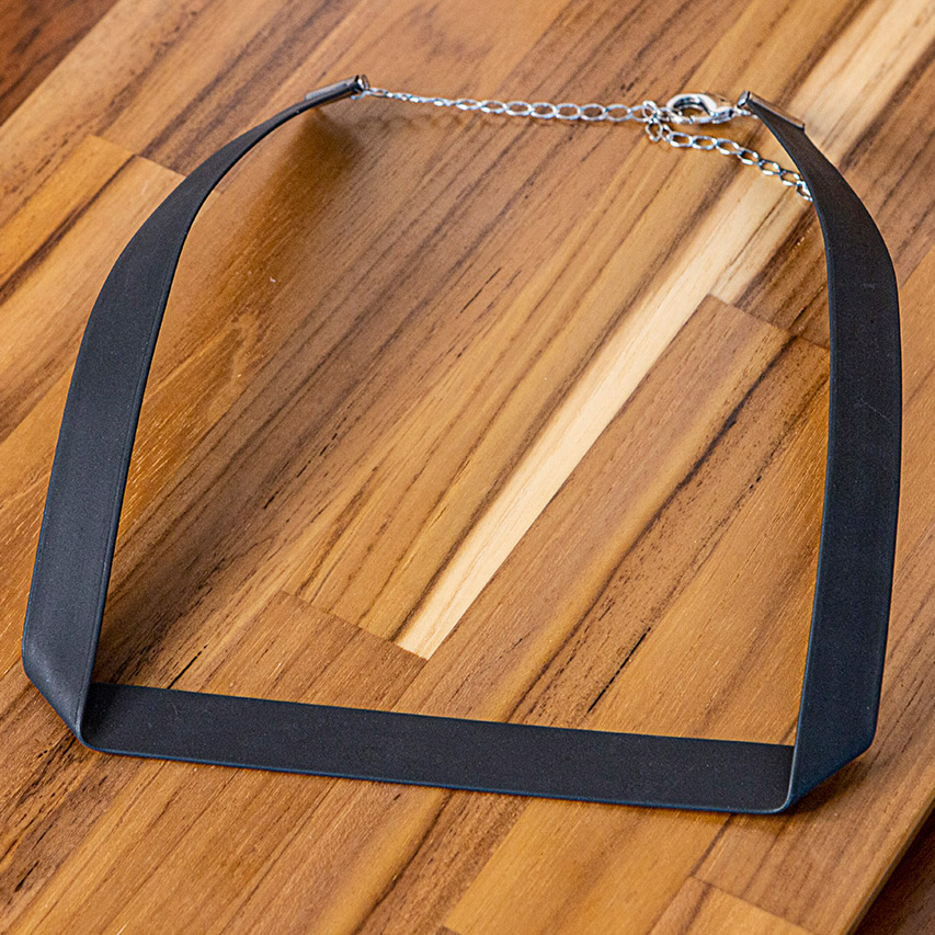 Silver plated necklace with rubber cover. Lobster claw clasp.