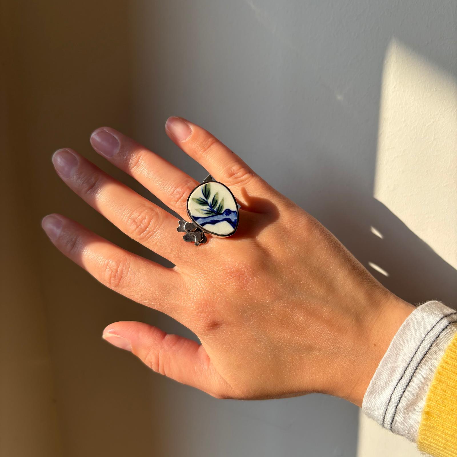 Materiali Modello 2 : gioiello realizzato interamente in argento 950, con dettagli in porcellana.