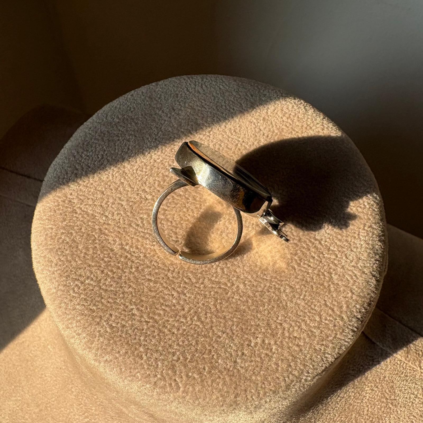 In questo caso, l’argento 950 è ossidato: è stato utilizzato un acido per ossidare il metallo e conferirgli questa tonalità più scura.