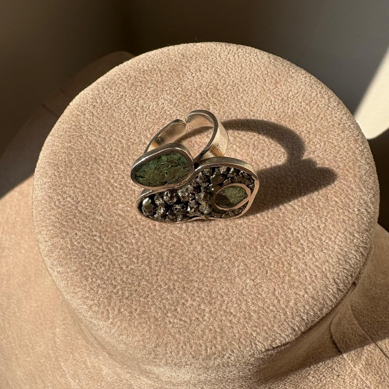 Materiali: realizzato interamente in argento 950, arricchito con pietra pirite e turchese.