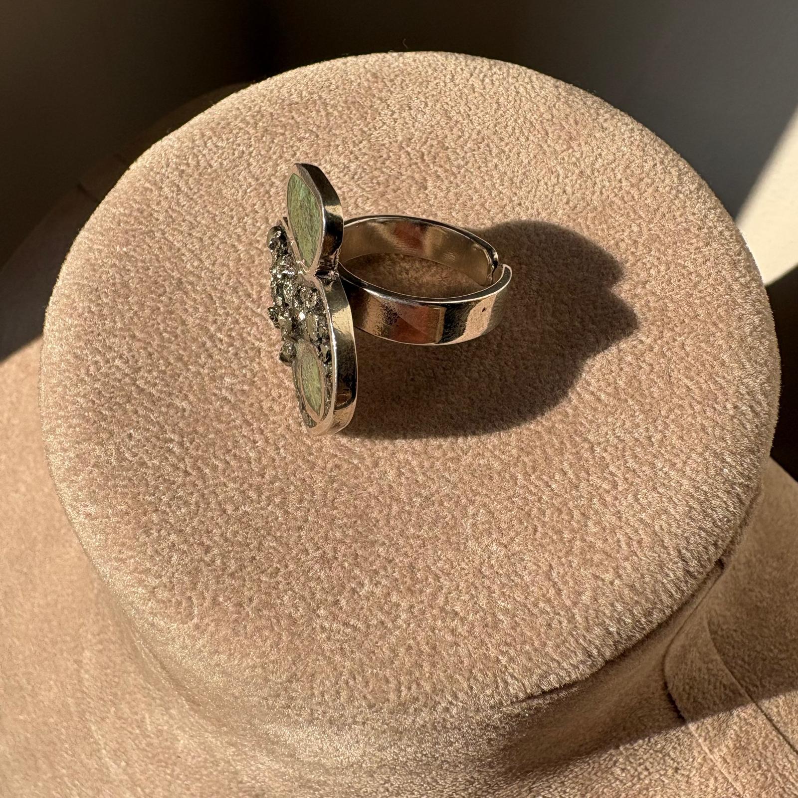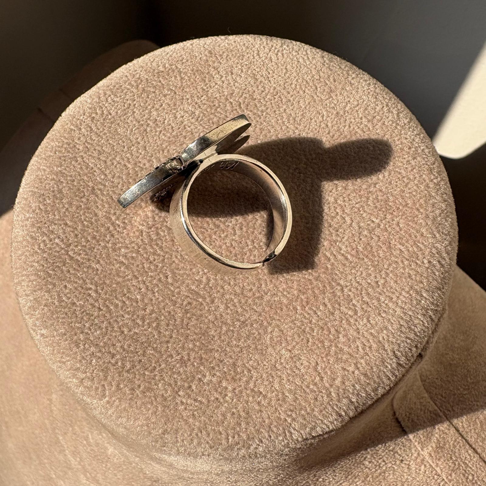 Il gioiello è realizzato utilizzando la tecnica “inlay”, un processo artigianale che consiste nell’incastonare pietre o materiali decorativi all’interno di una base metallica, creando superfici perfettamente levigate e motivi unici.
