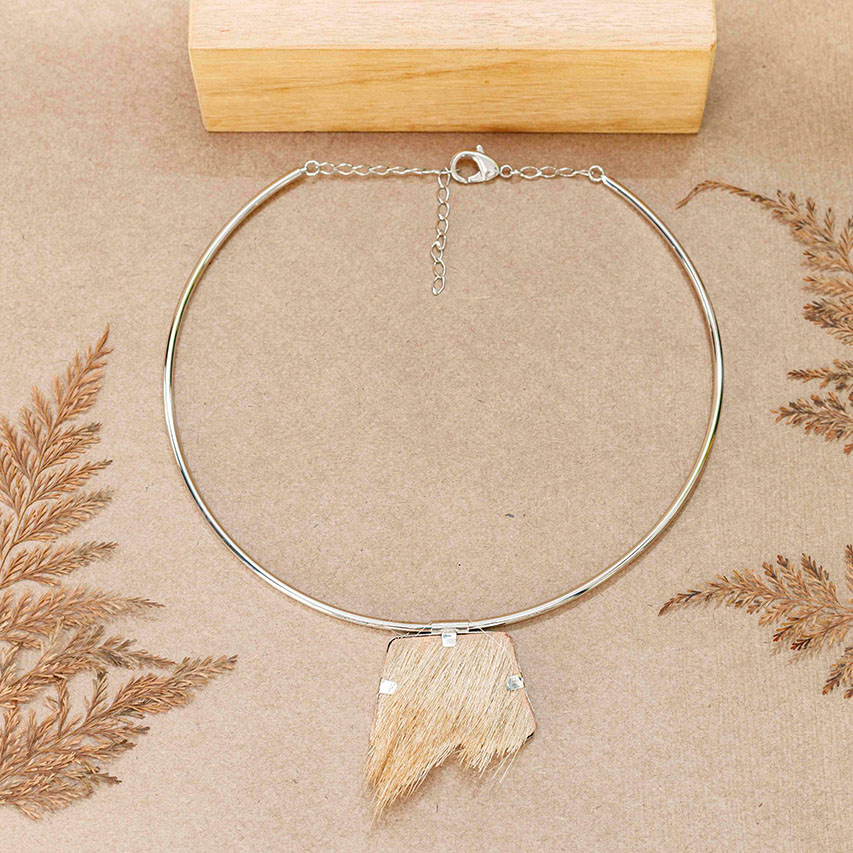 Collana in metallo placcato argento e dettagli in pelo di capra.