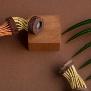 Collana fatta a mano utilizzando principalmente plastica riutilizzata e cocco dell’albero di Piaçava (Attalea Funifera) originario dello stato di Bahia.