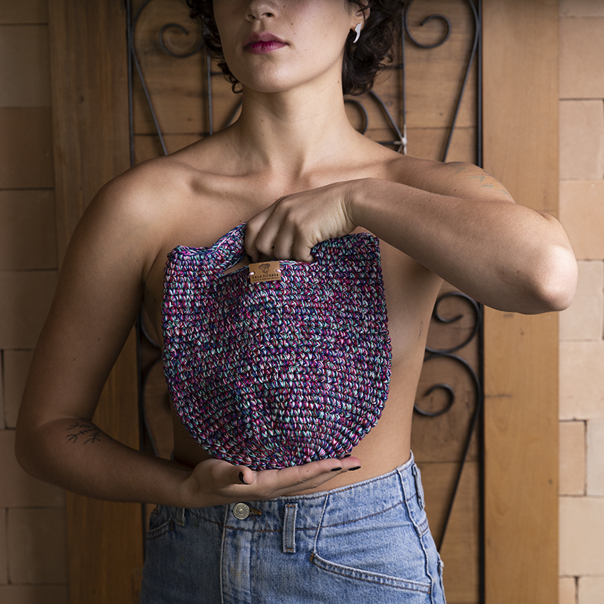 Borsa interamente realizzata con la tecnica dell’uncinetto. Realizzata interamente a mano in Brasile.