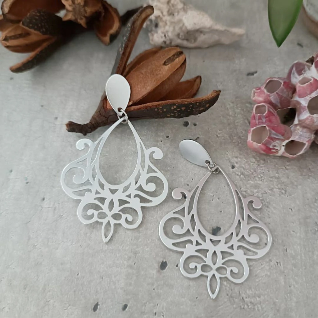 Materiali: Gioiello realizzato interamente in alluminio. I perni di montaggio dei nostri orecchini sono in acciaio chirurgico (ipoallergenici).