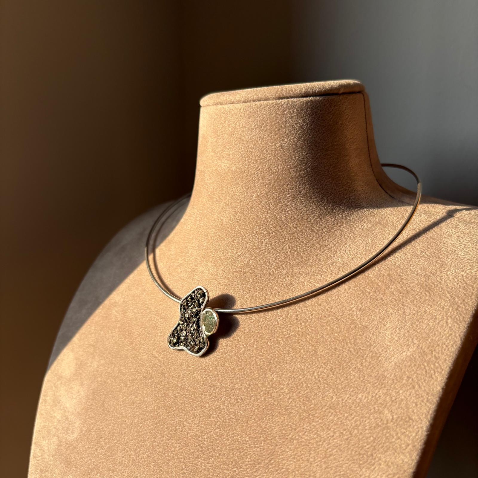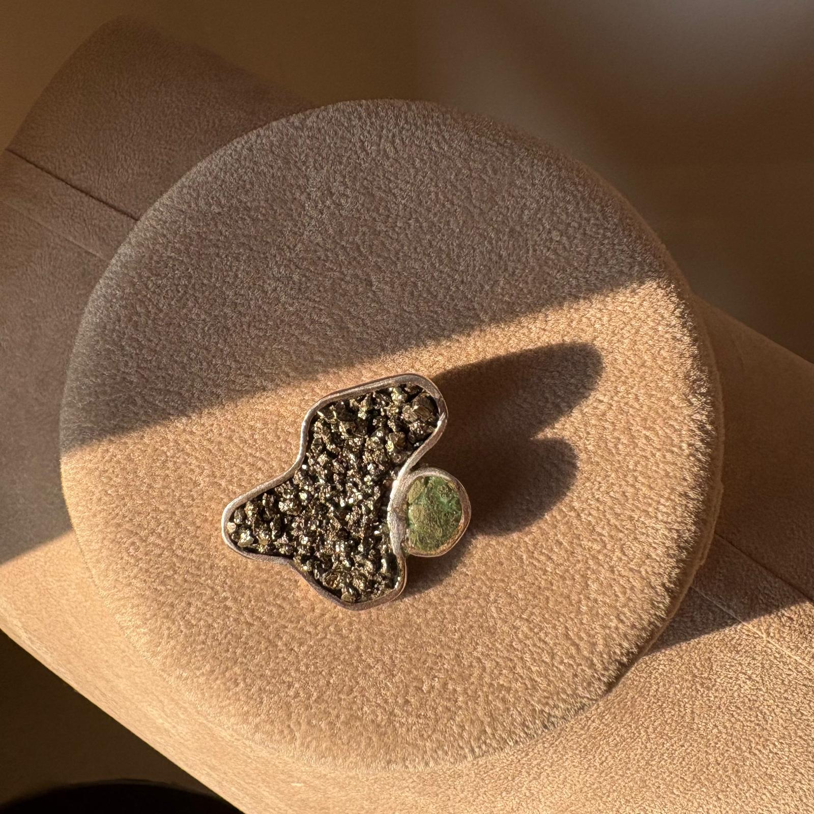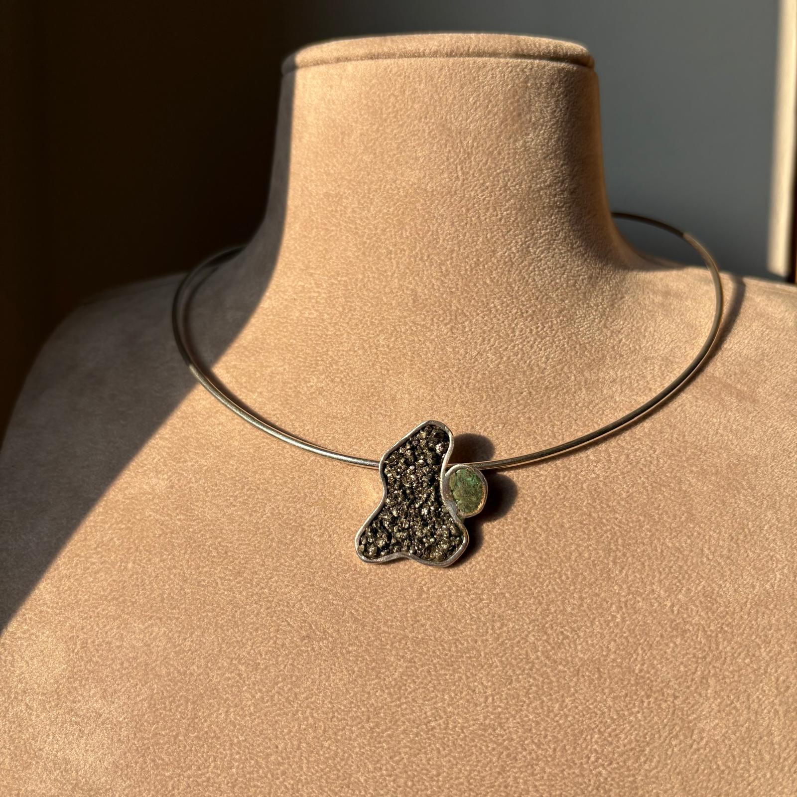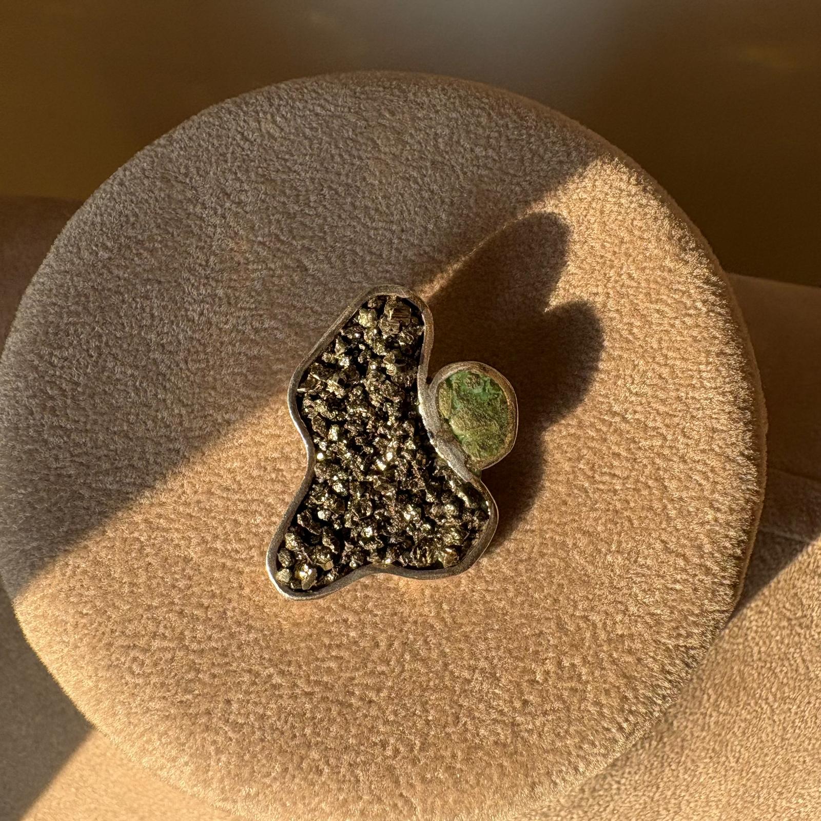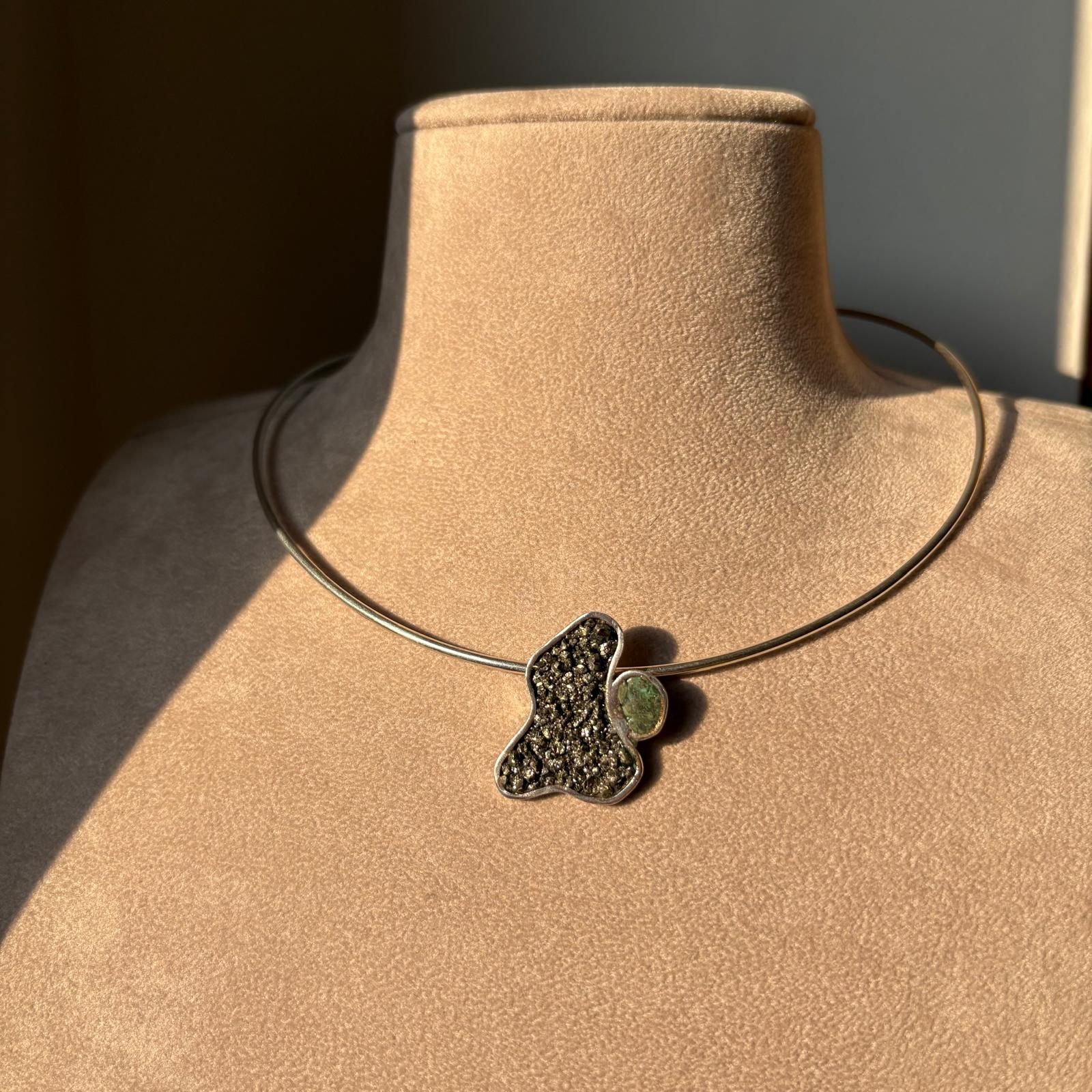 Materiali: realizzato interamente in argento 950, arricchito con pietra pirite e turchese.