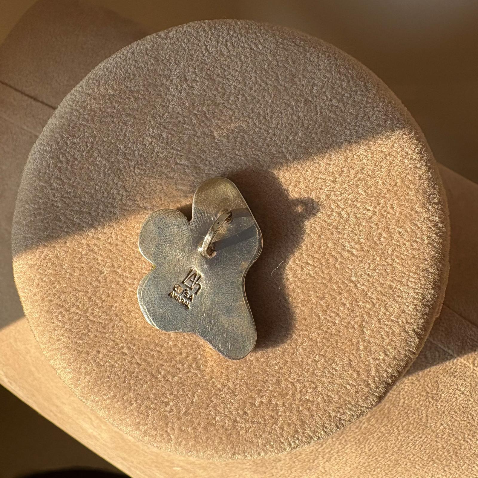 Il gioiello è realizzato utilizzando la tecnica “inlay”, un processo artigianale che consiste nell’incastonare pietre o materiali decorativi all’interno di una base metallica, creando superfici perfettamente levigate e motivi unici.